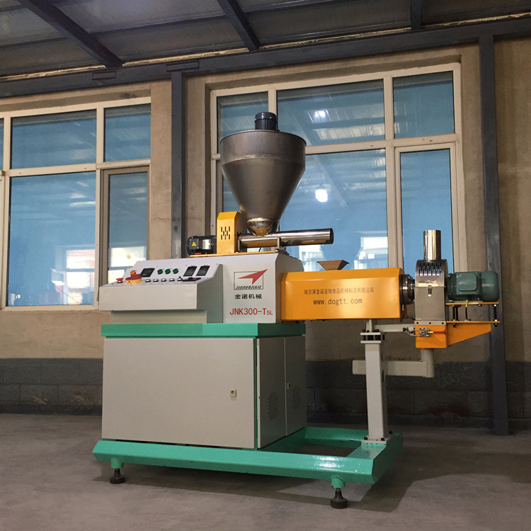 JNK300-T5L鮮肉狗糧設備特點1。狗糧加工設備300-T5L標配球形喂料系統,變頻控制,喂料精度高,流量穩定不結塊;2.德國品牌變頻器控制切刀轉速,誤差0.01赫茲,顆粒均勻穩定,選用彈性刀片,經濟耐用;3。300-T5L狗糧顆粒機匹配智能恒溫加熱裝置,溫度可根據狗糧原材料的比例、細度、油脂含量、蛋白含量、膨化度及顆粒容重的要求設定,智能溫控、恒溫保證;4。300-T5L生產狗糧時,原料中可以加入新鮮的三文魚肉、雞胸肉、鴨肉、牛肉、胡蘿卜、西紅柿、芹菜等新鮮蔬菜;5。300-T5L狗糧設備可以出一顆顆粒、二顆顆粒、三顆顆粒、六顆較小的寵物食品顆粒或6顆小顆粒(直徑在5-5.5毫米之間)。